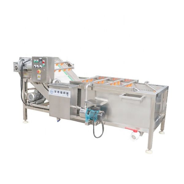 The device is equipped with a bubble generating device, which makes the material roll over and removes the effect of pesticide residues on the surface of the product. At the same time, an appropriate amount of pharmaceutical can be added to disinfect and fix the color. Floating matter can overflow from the overflow tank, and the sediment is discharged from the sewage outlet to achieve the purpose of cleaning.